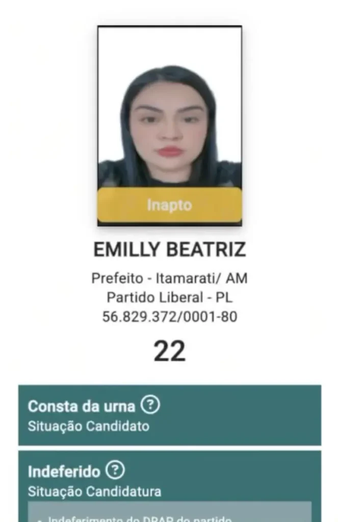 Apesar disso, Emilly conseguiu reverter a situação judicialmente, participou do pleito e obteve 26,93% dos votos válidos, embora tenha sido considerada “inapta” no sistema do Tribunal Regional Eleitoral do Amazonas (TRE-AM).